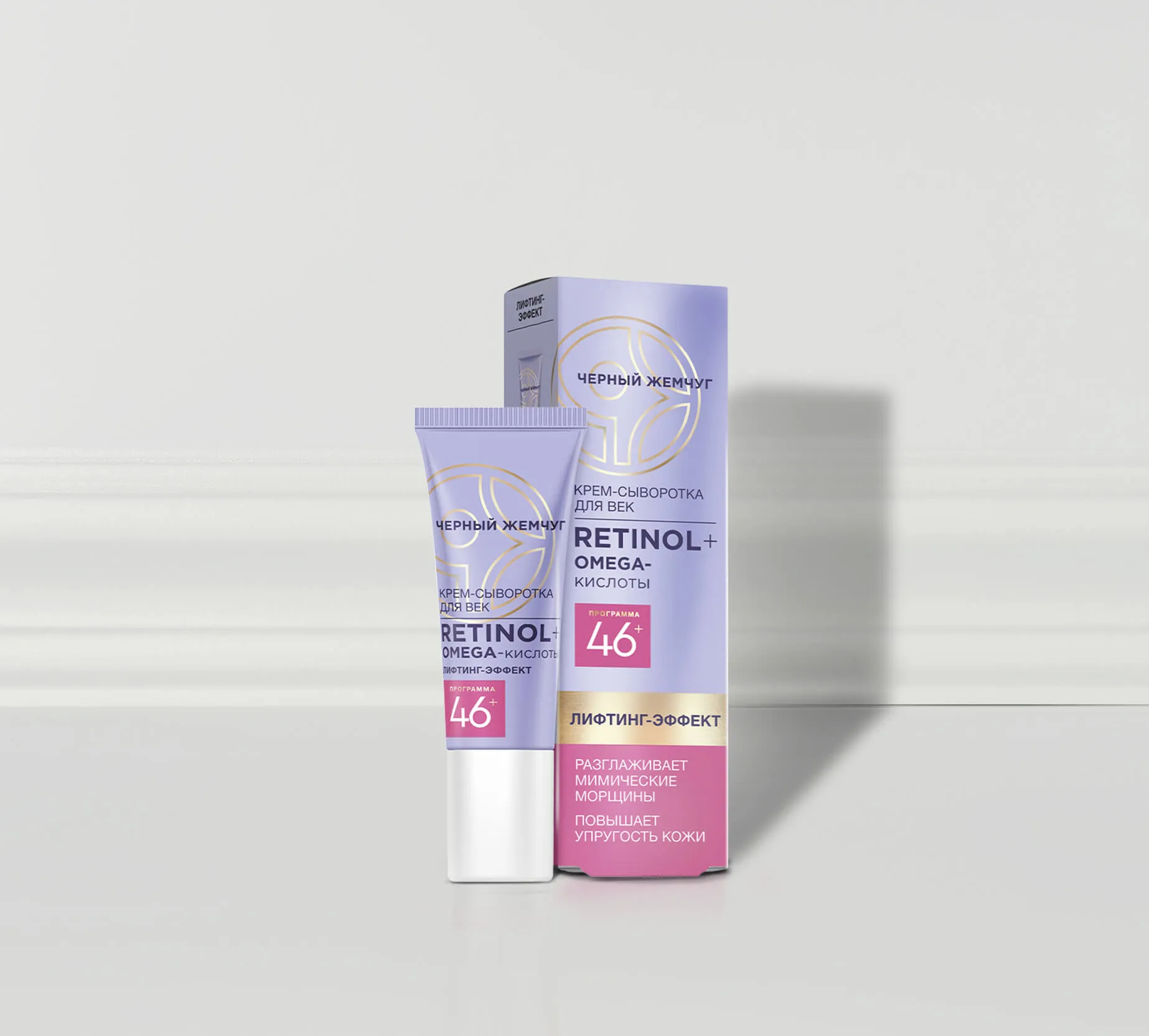 Эксперты бренда Черный Жемчуг разработали крем-сыворотку для век Программа 46+ на основе возрастных особенностей кожи в зоне вокруг глаз после 46 лет. Ключевые проблемы в этот период: сухость, снижение плотности и упругости, признаки усталости, мимические морщины.
