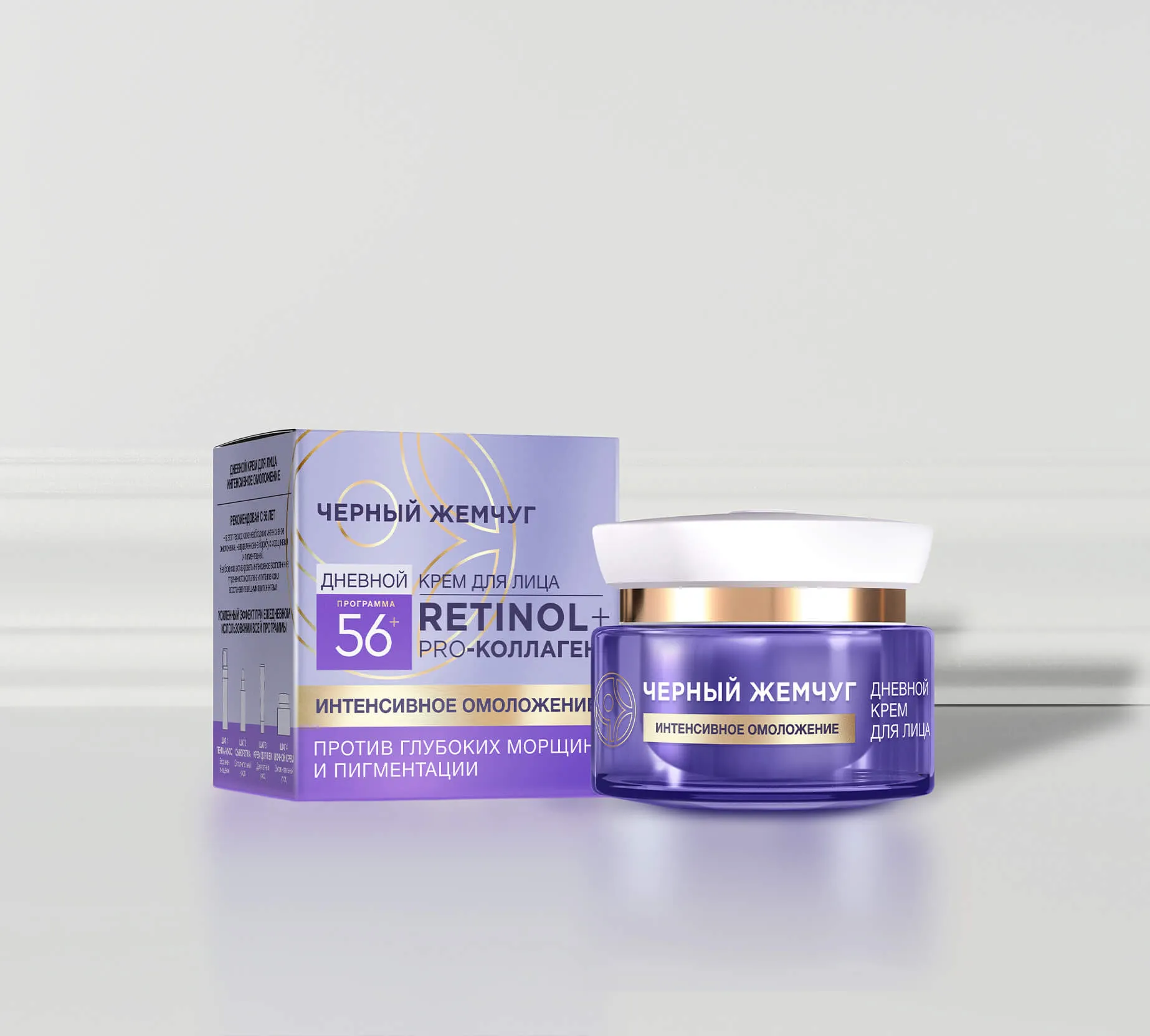 Дневной крем Черный Жемчуг Программа 56+ выводит ежедневный уход за лицом в домашних условиях на новый уровень*. После 56 лет коже нужна усиленная забота и внимание. Ей требуется активное питание, восстановление запасов коллагена, уход, направленный на избавление от морщин и пигментных пятен. Дневной крем активирует синтез коллагена, эластина и гиалуроновой кислоты для восстановления изнутри.